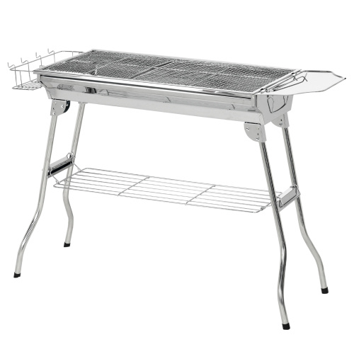 BBQ with Outdoor Storage: Our outdoor grill features storage space. A bottom storage shelf brings space for charcoal; two alloy plates offer a place for seasonings; hooks can hang utensils; and a side basket is an area for ingredients.