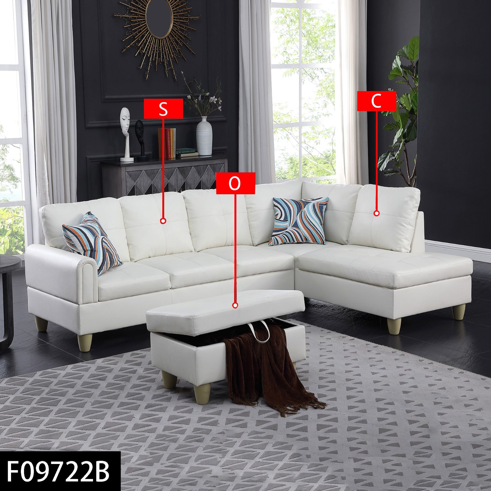 Pickup Only--White Faux Leather 3-Piece Living Room Sofa Set