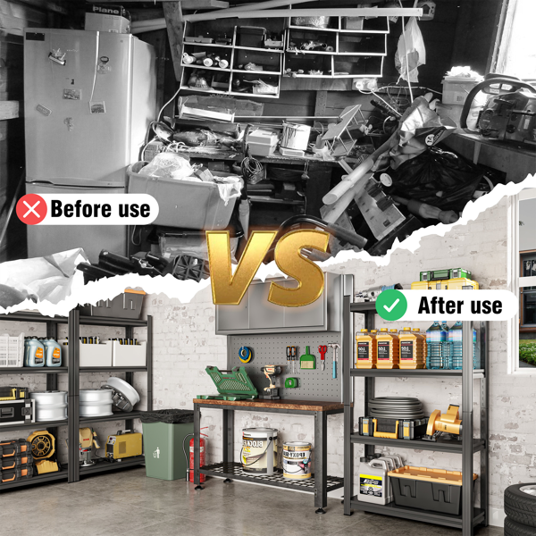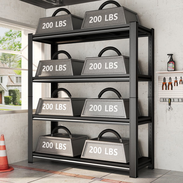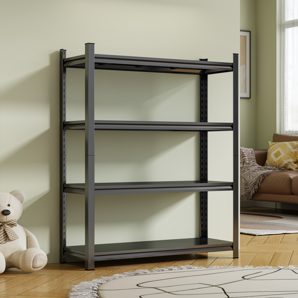 4-Tier Height-Adjustable Metal Storage Rack, Vertical Organizer, 63' H X 45.27' W X 17.7' D, Black, Assembly Required