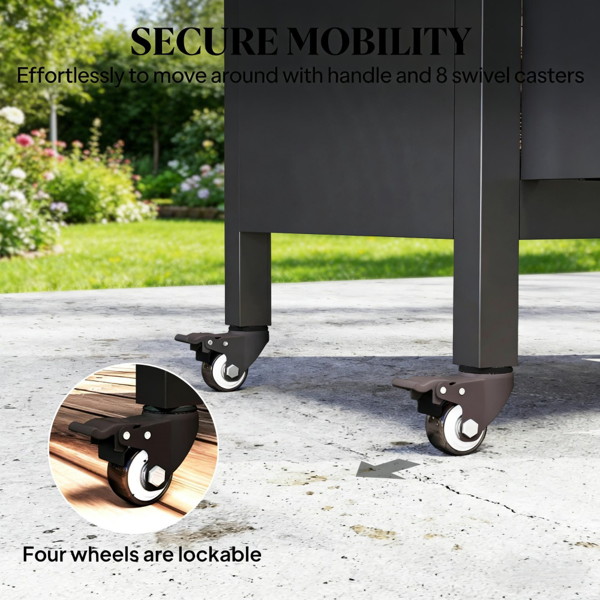 - Includes eight universal casters (four lockable), offering easy mobility and effortless placement anywhere