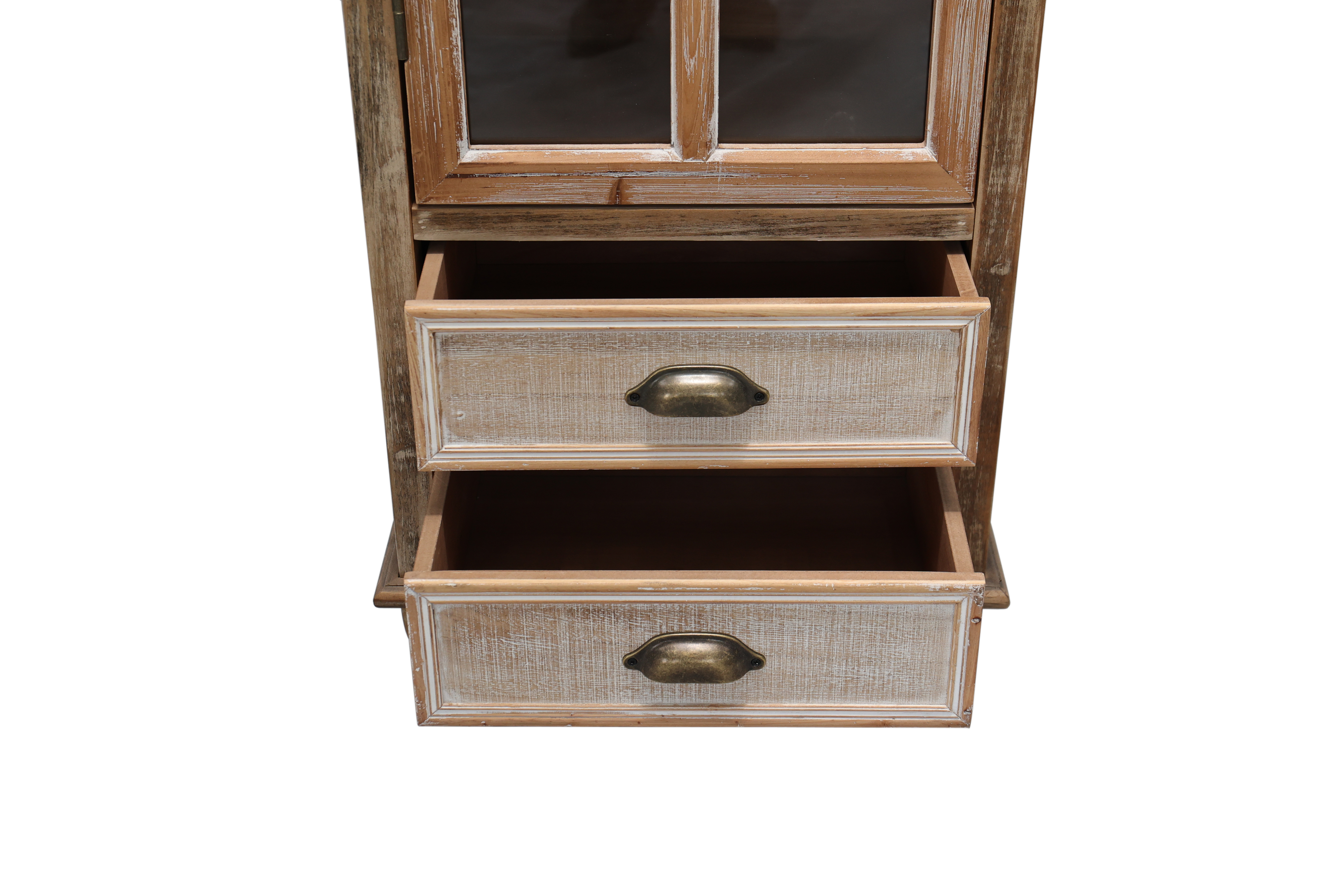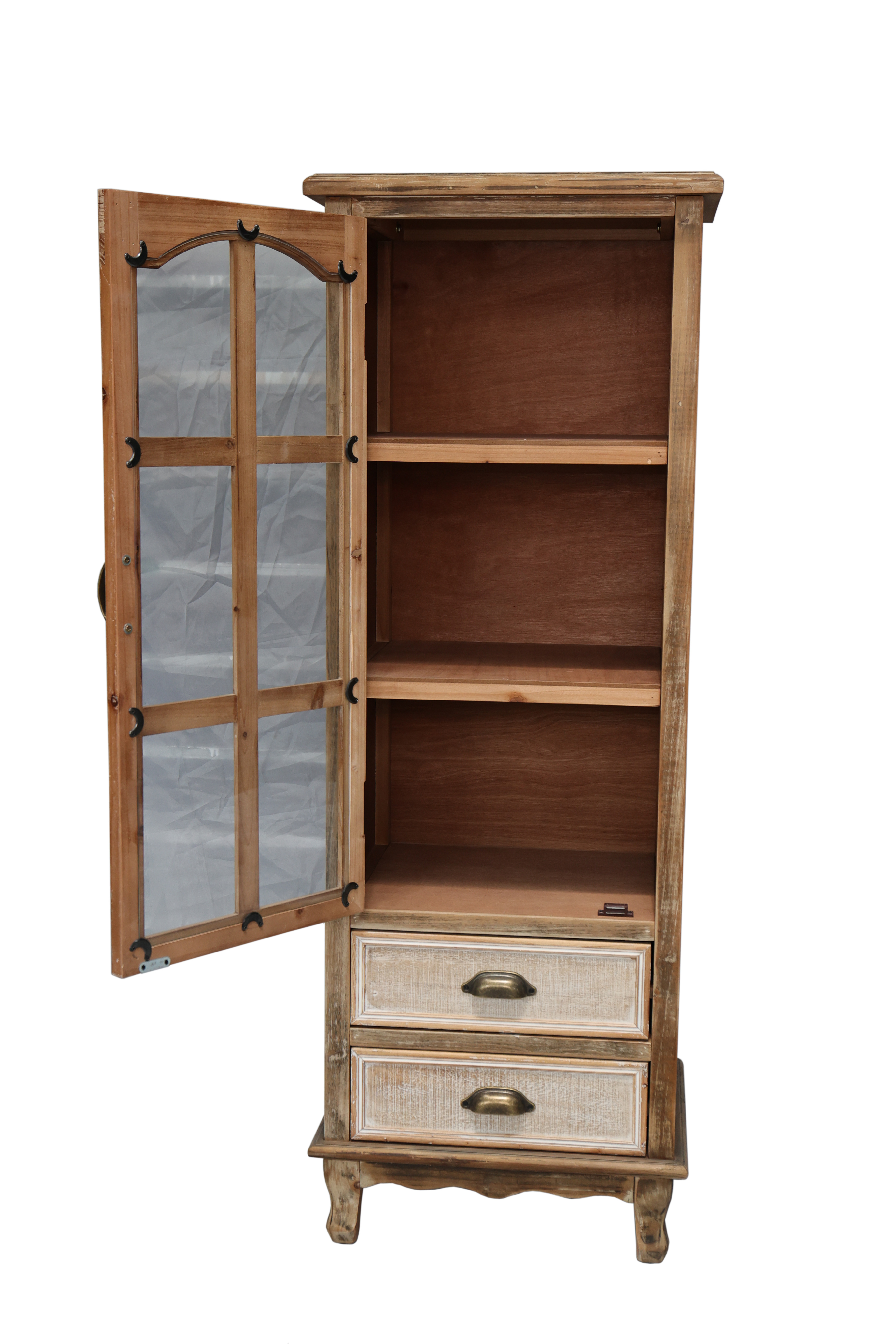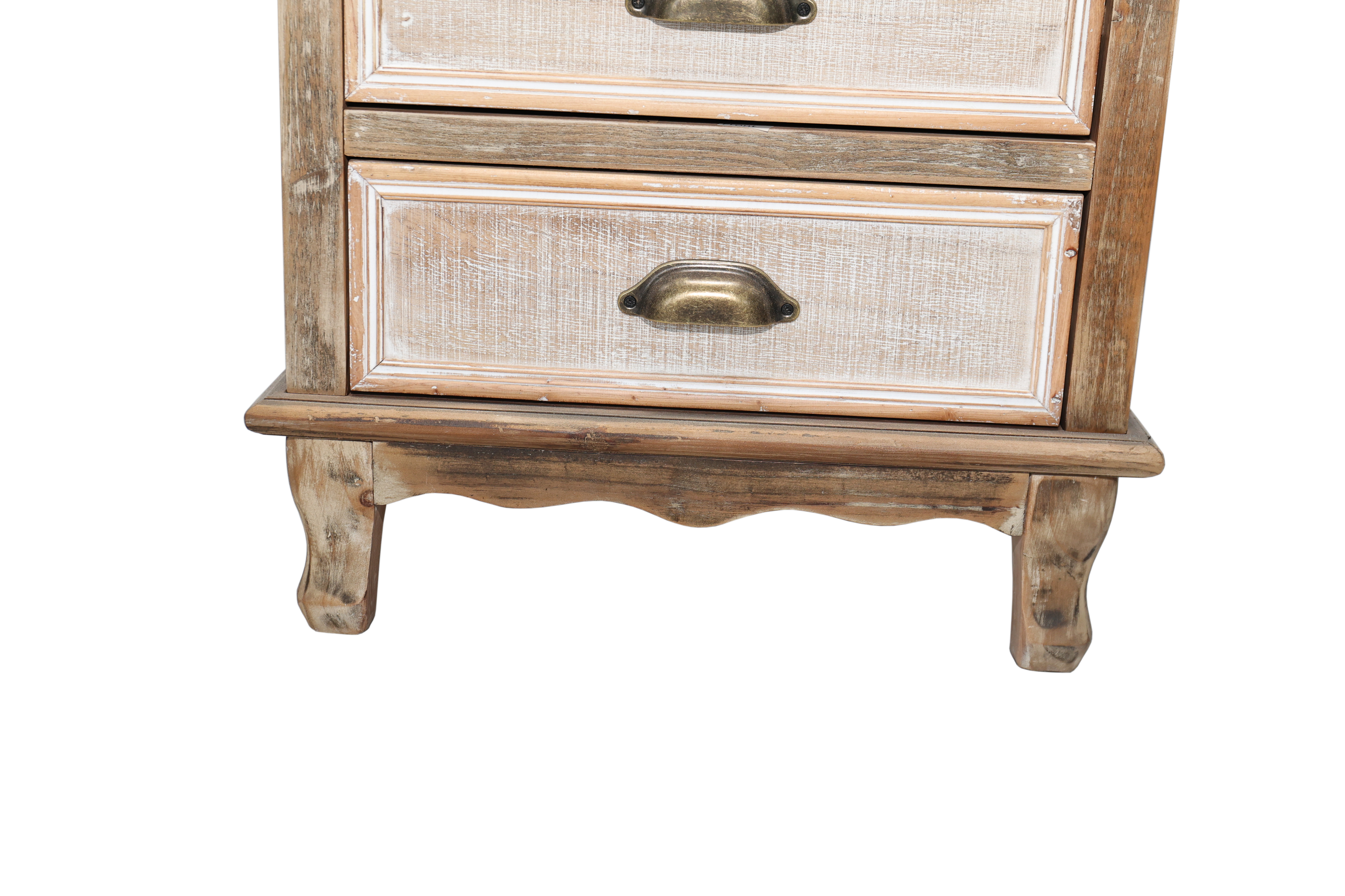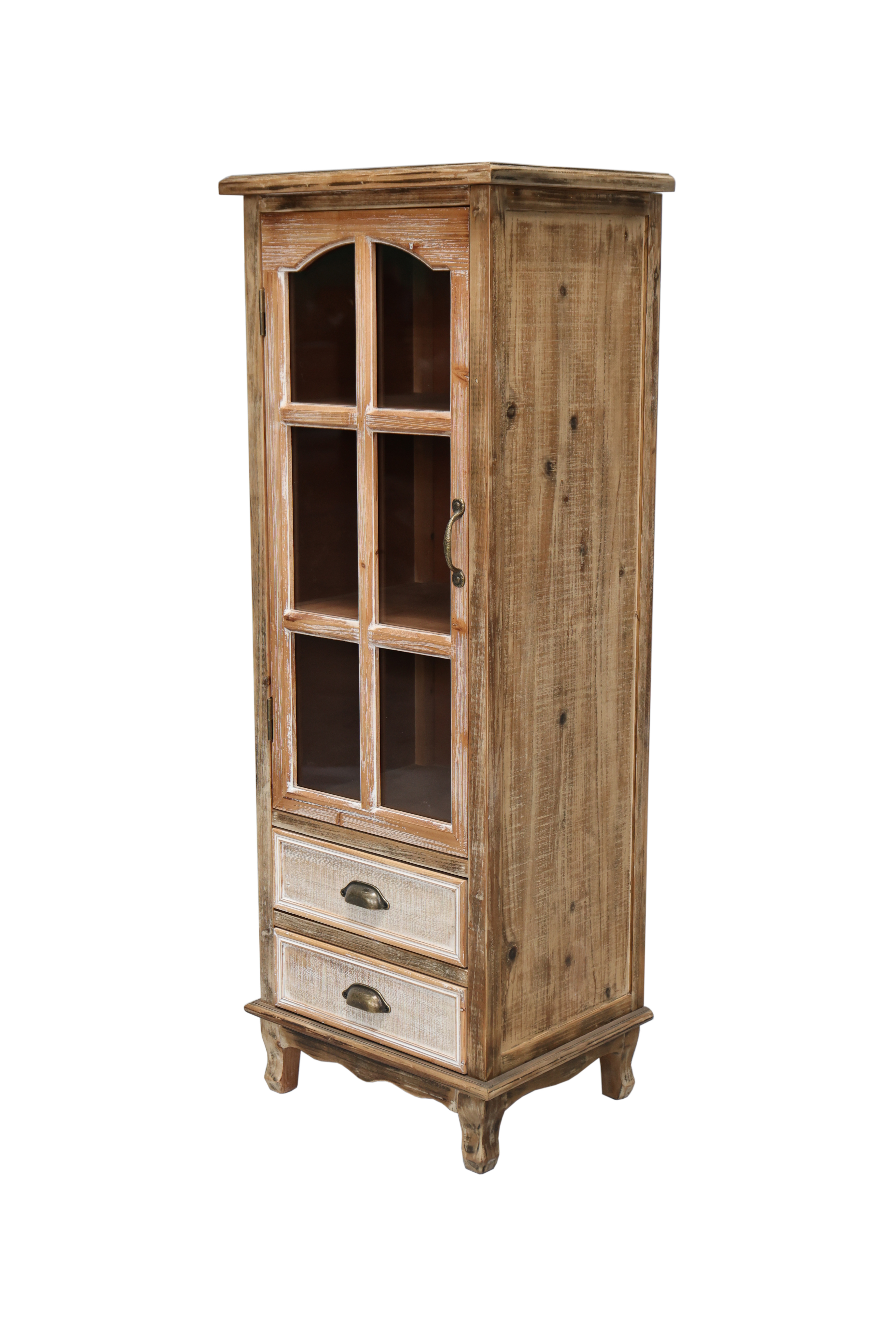 Product Name:Rustic Wooden Storage Cabinet with Decorative Cutout Door & 3 Drawers, Tall Narrow Organizer for Living Room, Bedroom(natural + antique white)