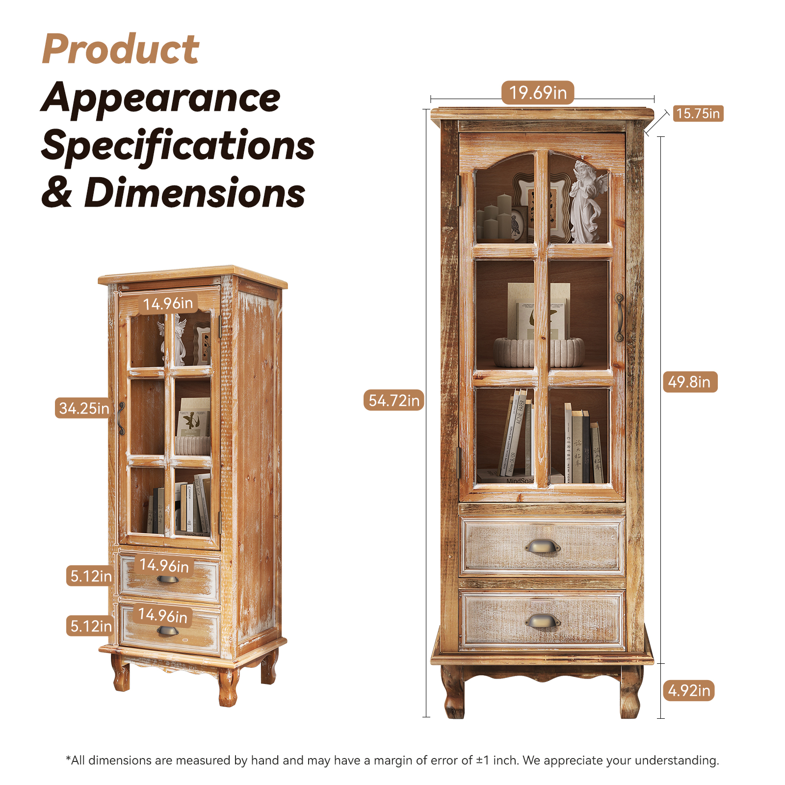 • Charming Rustic Design:Features a distressed wood finish + elegant cutout door, adding a vintage touch to any room (living room, bedroom, hallway).