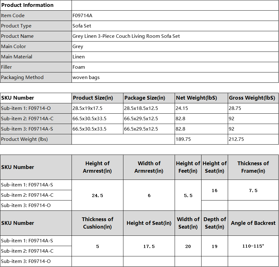 Home > Pickup Only--Grey Linen Living Room Sofa Ottoman