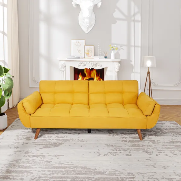 Home > 75' Flared Arm Convertible Sleeper Sofa-Yellow