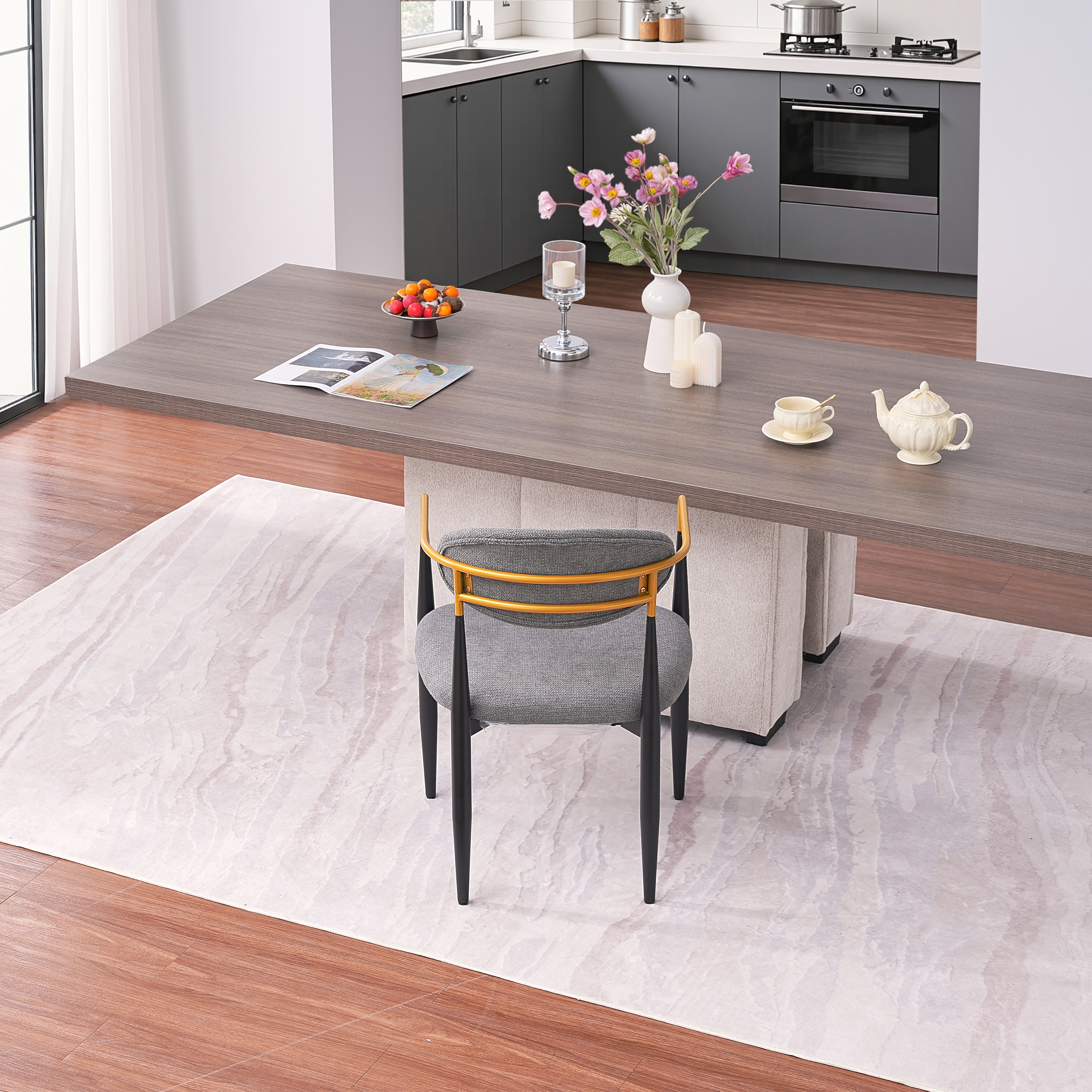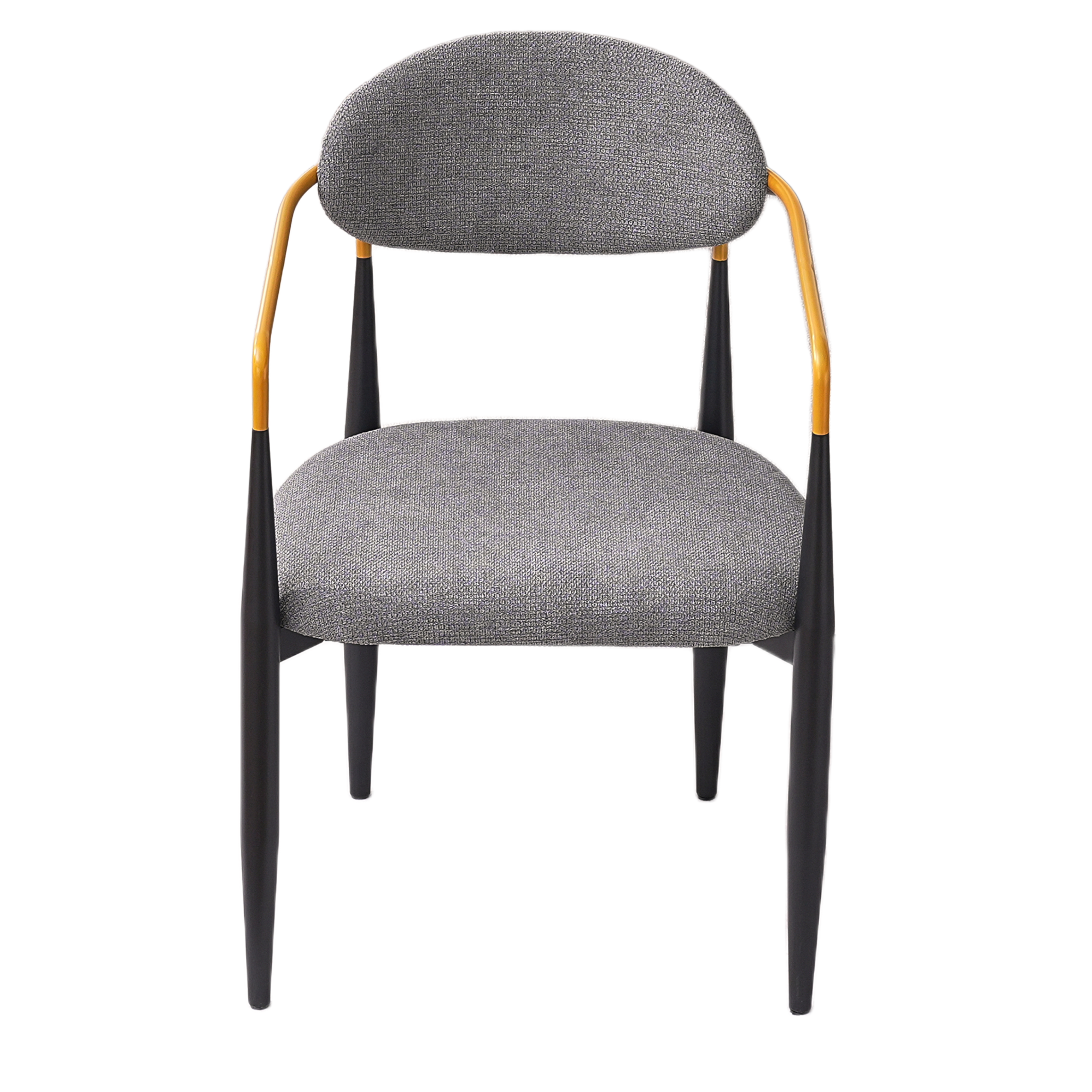 Product Name:Modern Upholstered Dining Chair with Gold-Accented Armrests - 22"W x 21"D x 30"H, Ergonomic Design for Home Dining Room or Office Use,Set of 2 - Grey Fabric Seat & Black Metal Frame