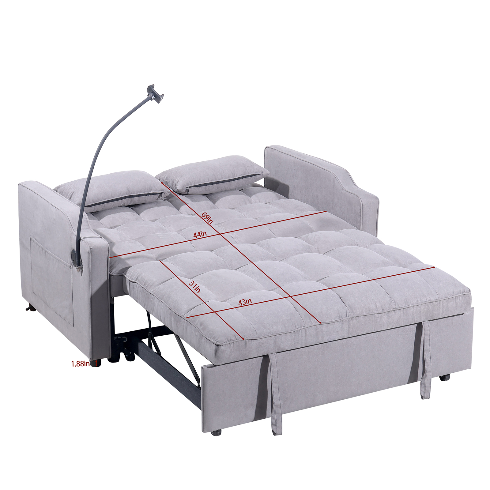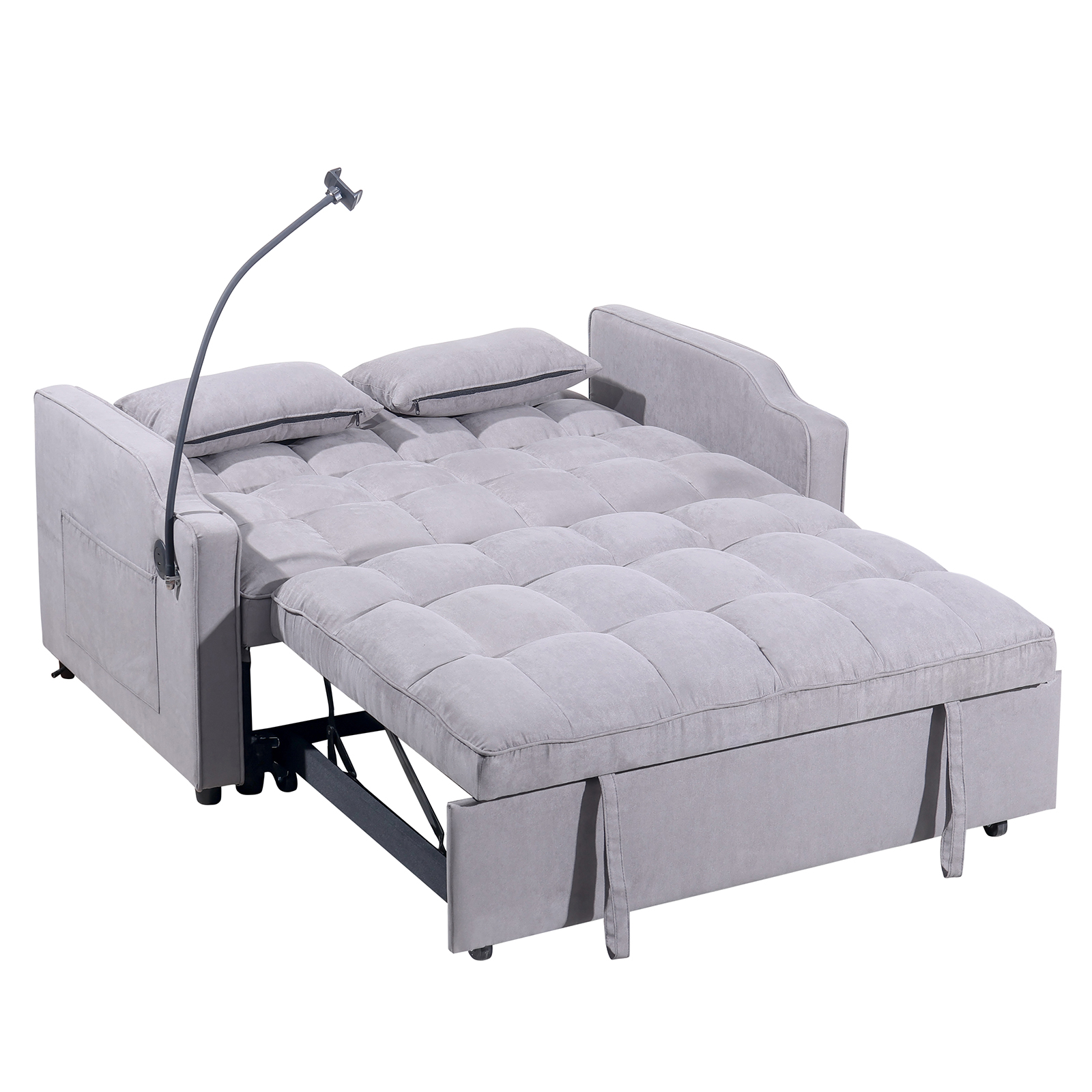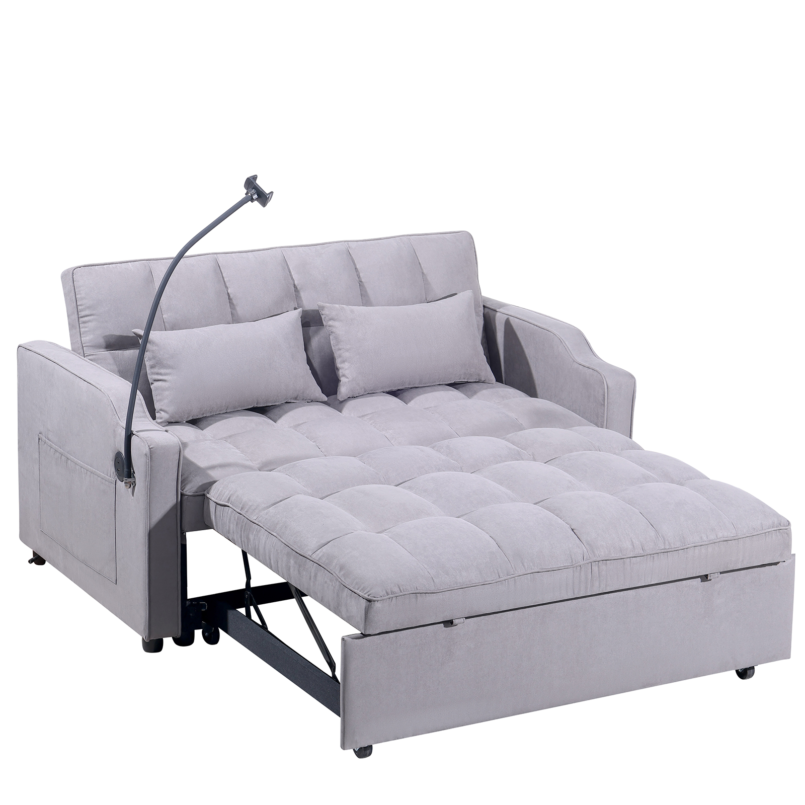 Product Name:1 multifunctional foldable sofa bed with 3 different lengths, modern sofa, upgraded suede fabric, adjustable backrest, gray color with USB port and rotating telephone stand