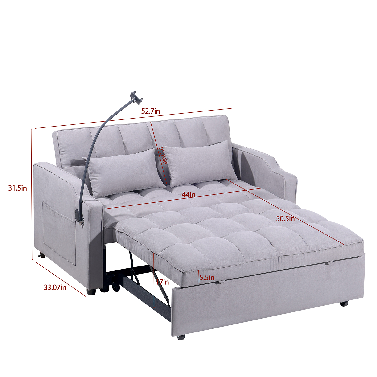 • USB and phone stand:There is a USB charging ports and swivel phone which allowing you to charge your devices and release your hands, let you enjoy watching movies,This sofa bed also comes with 2 soft pillows.